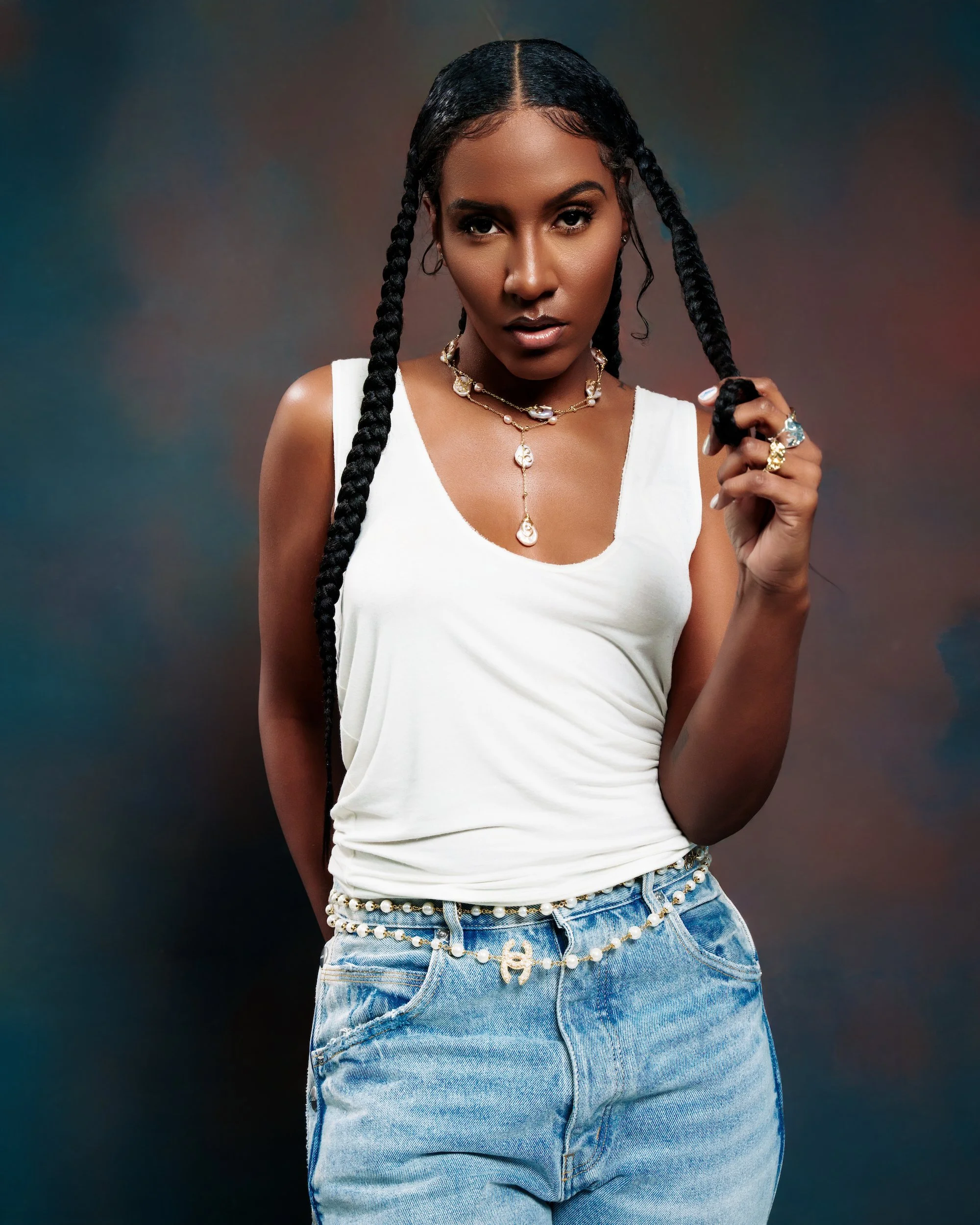 Her artistry traces back to the church pews she sat in with her mother, where her curiosity for instruments and sound first took root. By eight, she was playing drums. By fifth grade, she was commanding school stages and igniting audiences—early flashes of the presence she carries today.